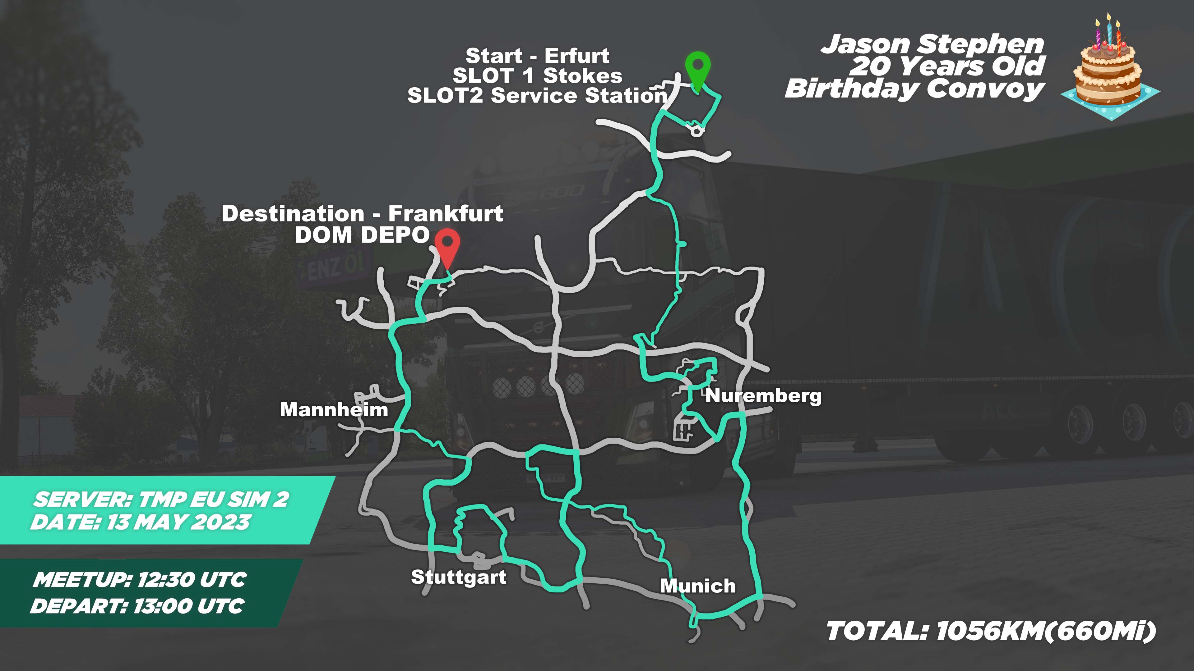 Hello, my name is Jason_Stephen, and I'm a video creator who shares my work on Bilibili and YouTube. In June 2021, I joined the ETS2 community and began creating ETS2 Convoy videos, which allowed me to make many new friends, including you. As it is my second year playing ETS2 and celebrate my 20th birthday, I'd like to invite you to join me in a birthday convoy. I would be honored if you could come and celebrate with me, and I look forward to sharing this special moment with you.